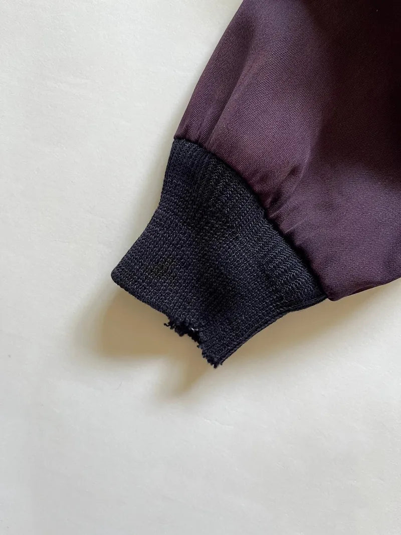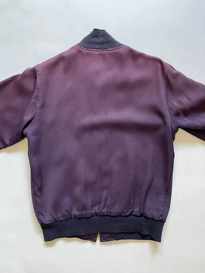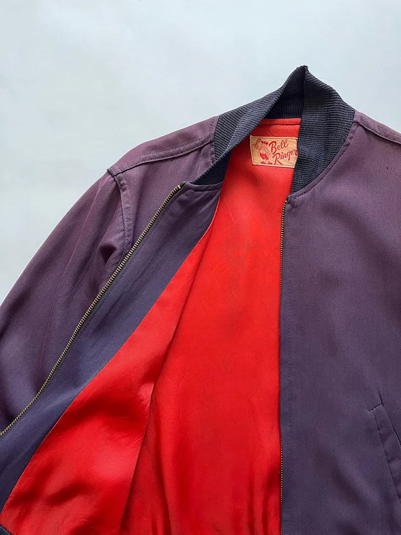 The purple has unique color shades given by the many years of the jacket. Red interior. Serval zip.