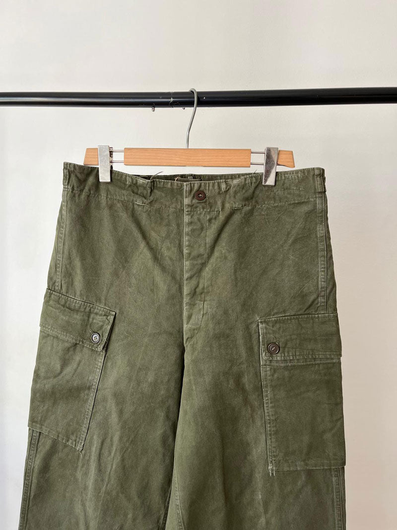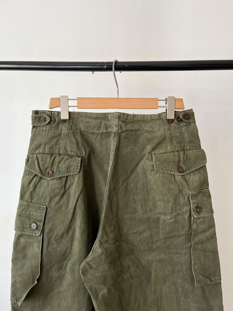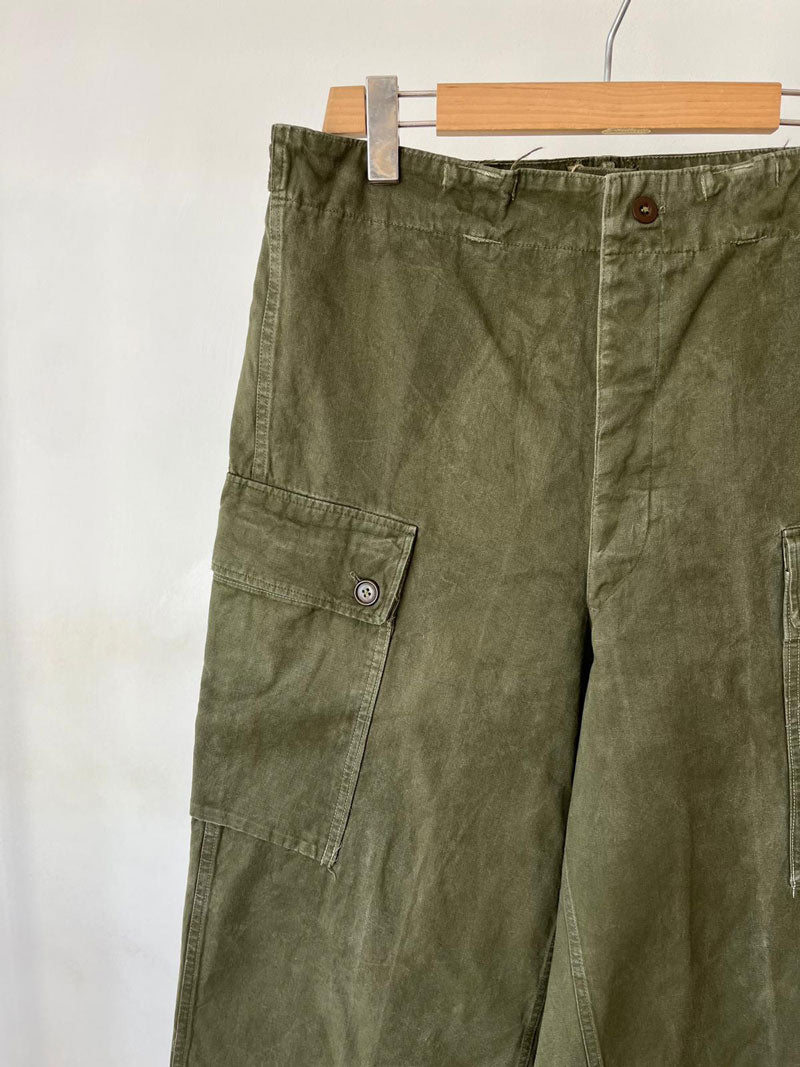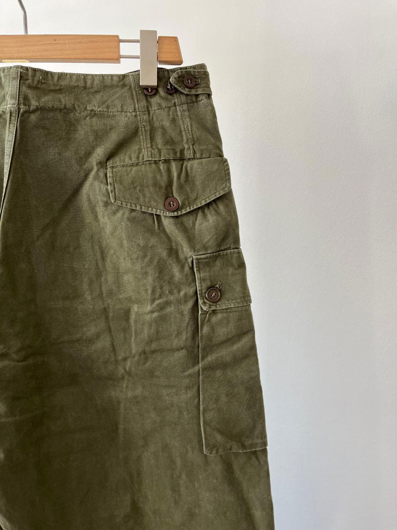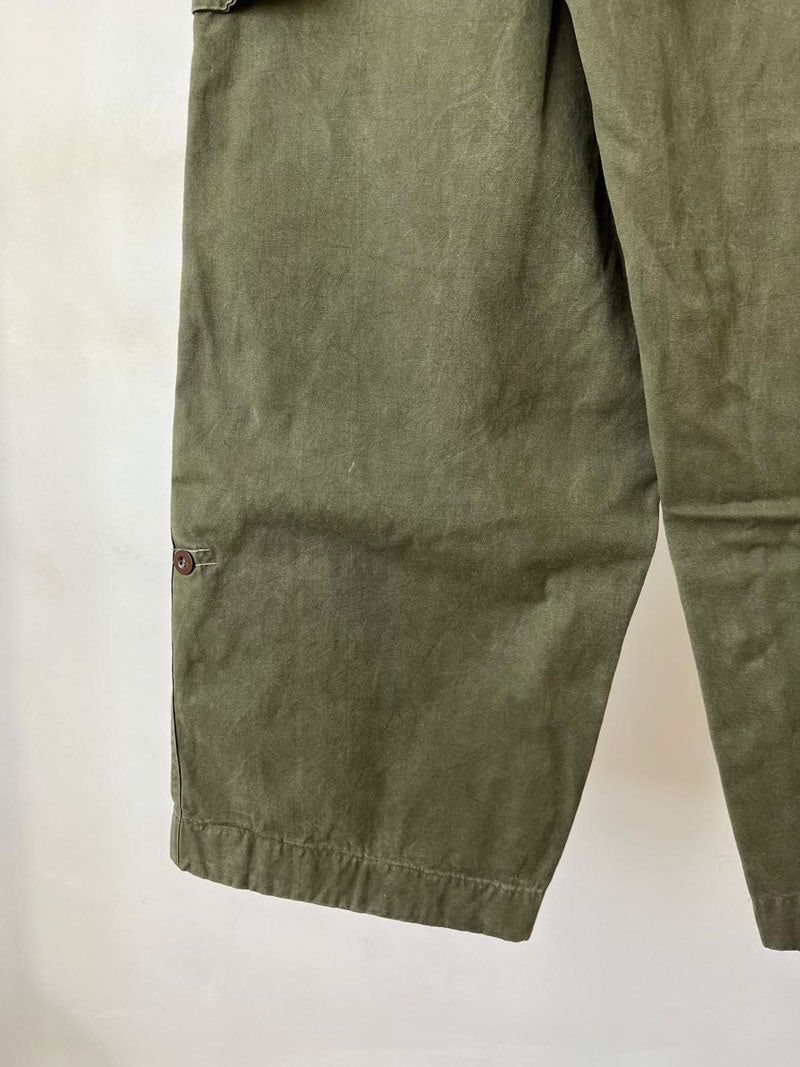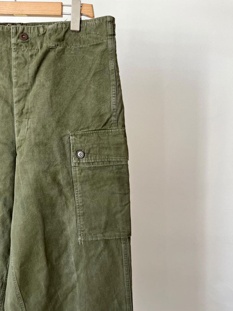 Dutch Army Cargo, a true piece of military history from the 1950s, made for the Dutch Army (Koninklijke Landmacht). Considered by us as probably one of the best cargo pants ever produced in the military, this piece stands out for its impeccable fit and unmatched quality.