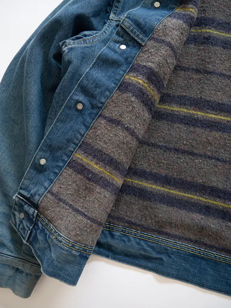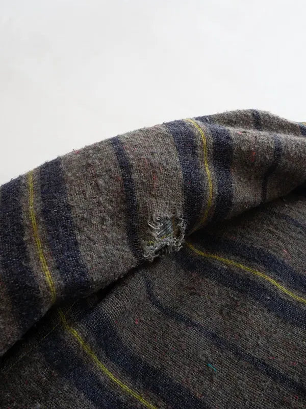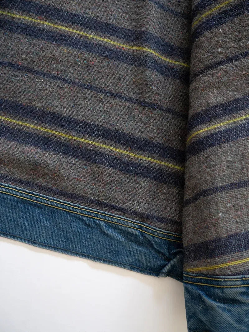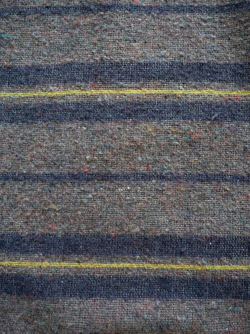 Wool lining with horizontal yellow and blue stripes, without the red stripes. Folded and sewn at the bottom of the jacket.