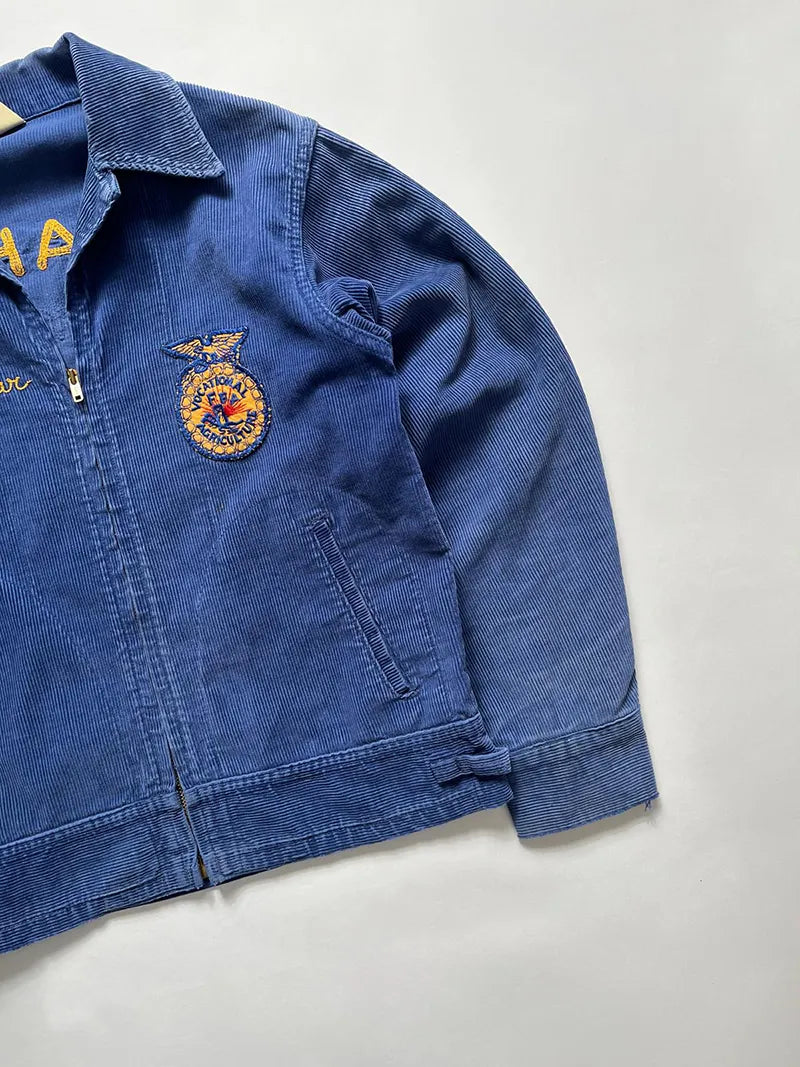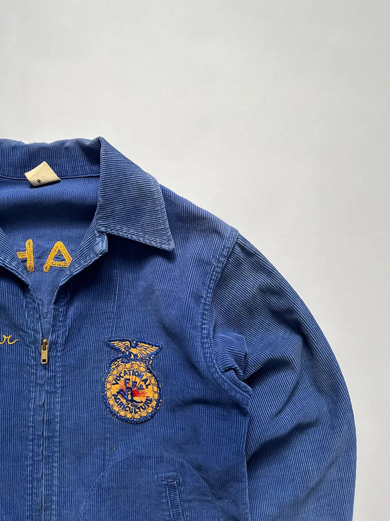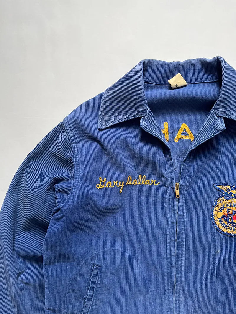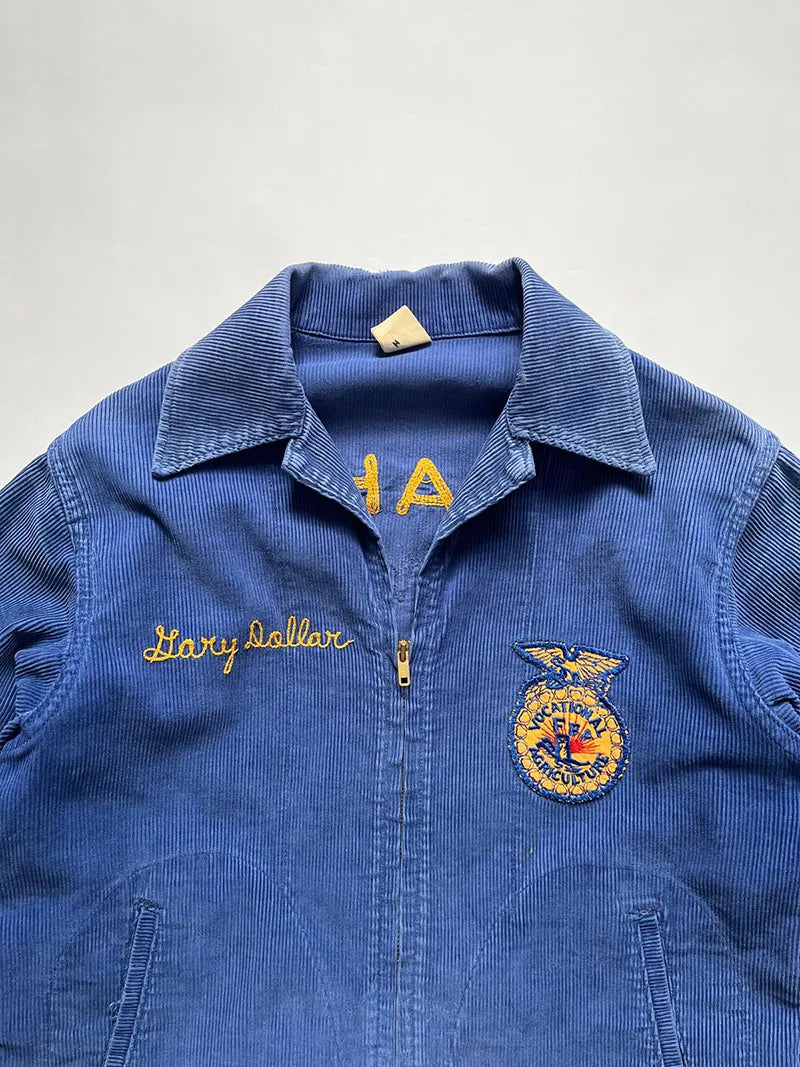 The FFA jacket is made of durable blue corduroy and features embroidered details that symbolize the association's identity and values. Over the years, while maintaining its classic design, it has become a cultural icon, appreciated not only by FFA members but also by vintage fashion enthusiasts and clothing historians.