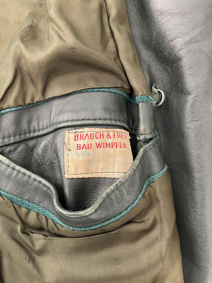 German leather jacket Brauch & Frey, made entirely of 100% leather, with incredible shades due to the passage of time. Complete with original label and small Opti zip.