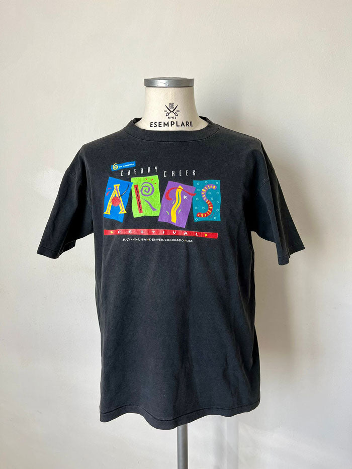 Graphic vintage tee black single stitch Cherry Creek festival, Denver Colorado Arts Festival. Dated 1996 Oneita Made USA brand.
