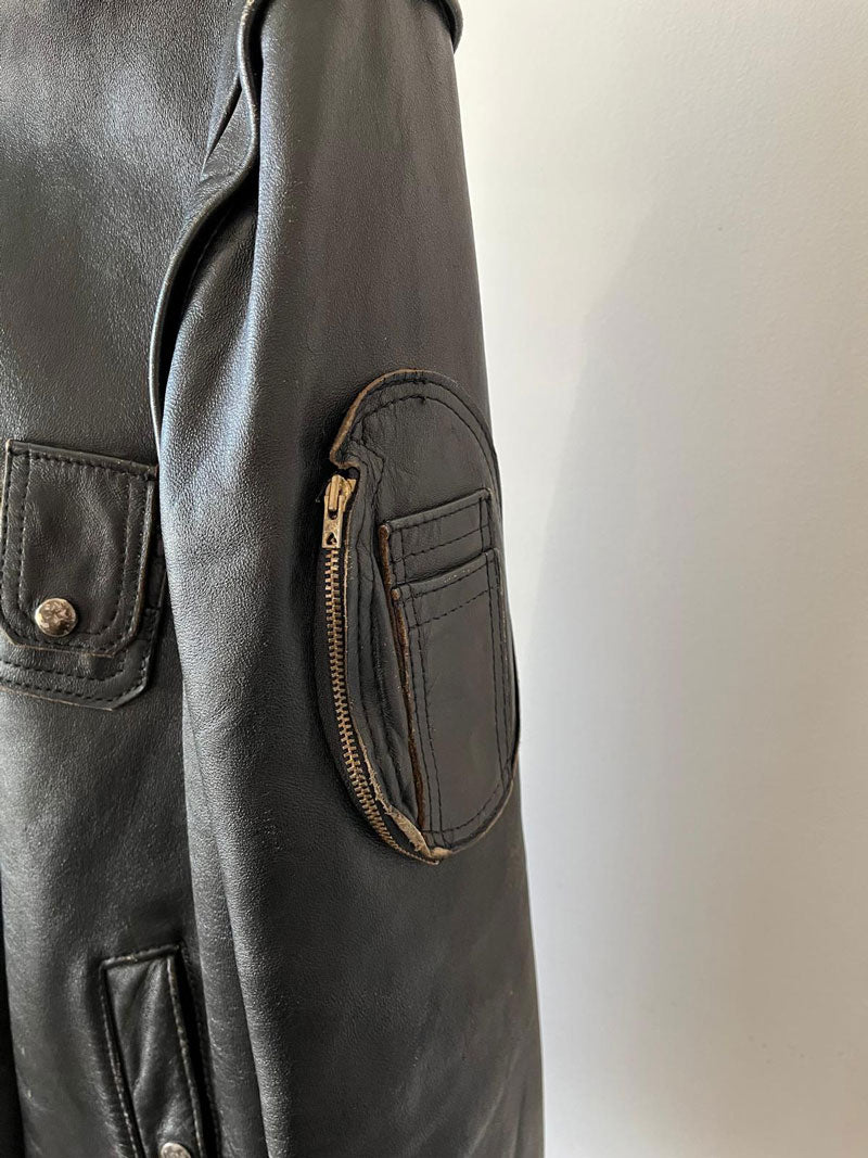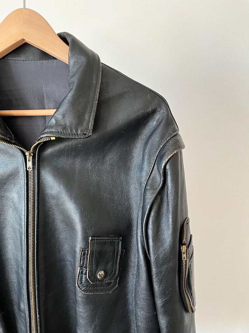 This leather jacket, dating back to the 70s and produced by the renowned French brand GVF Impercuir based in the southwest of France, is an iconic piece of civil aviation. Originally intended for French pilots, it stands out for its functional design and quality of workmanship.