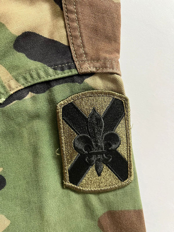 Vintage 90s US Army Woodland Camo Warm Weather Combat Coat made from a tough and durable ripstop fabric.