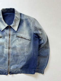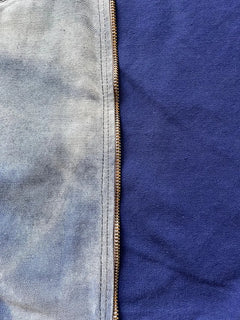 Conditions: La veste présente des nuances sûrement dues à une longue exposition au soleil et au travail. La fermeture éclair est parfaitement fonctionnelle. La fermeture du bas en coton est abîmée.