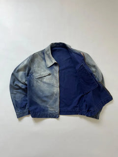 Veste de cycliste française des années 1950 en coton bleu.