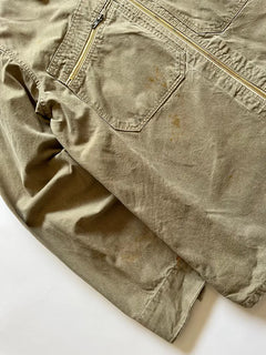 État : La veste présente des signes naturels de vieillissement : décoloration, légères imperfections du tissu et une fermeture éclair qui ne coulisse pas parfaitement. Cependant, elle ne présente aucun dommage structurel et reste parfaitement portable.