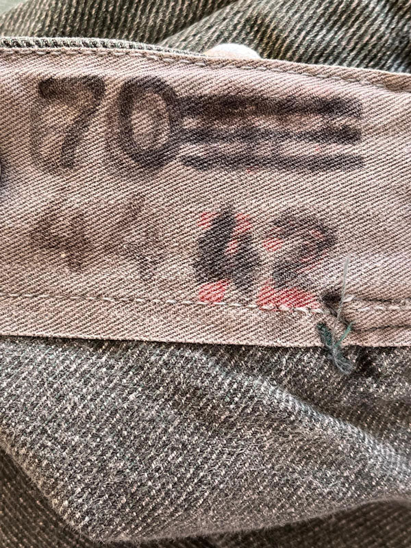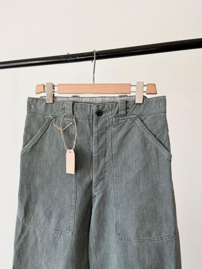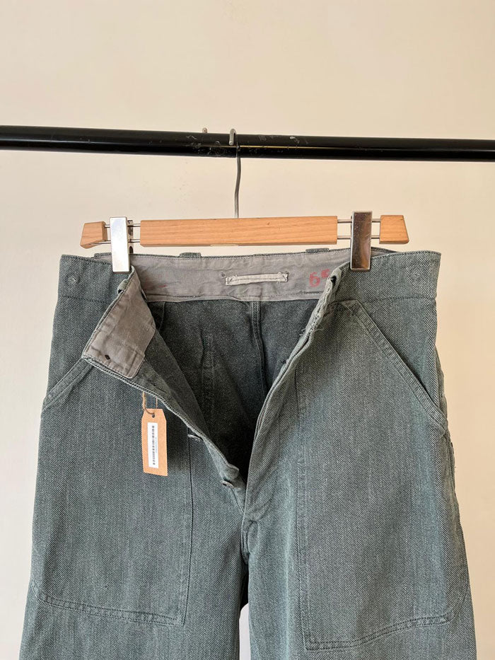 Pantalon de travail de l'armée suisse en denim produit pour le gouvernement des années 1950 aux années 1990 et utilisé principalement par l'armée suisse et les gardiens de prison.
