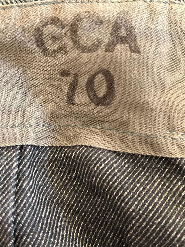 Pantalon en denim de l'armée suisse, produit pour le gouvernement entre les années 1950 et 1990, utilisé principalement par l'armée suisse et les gardiens de prison.