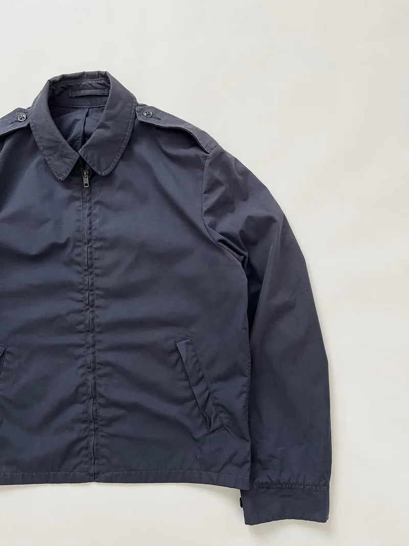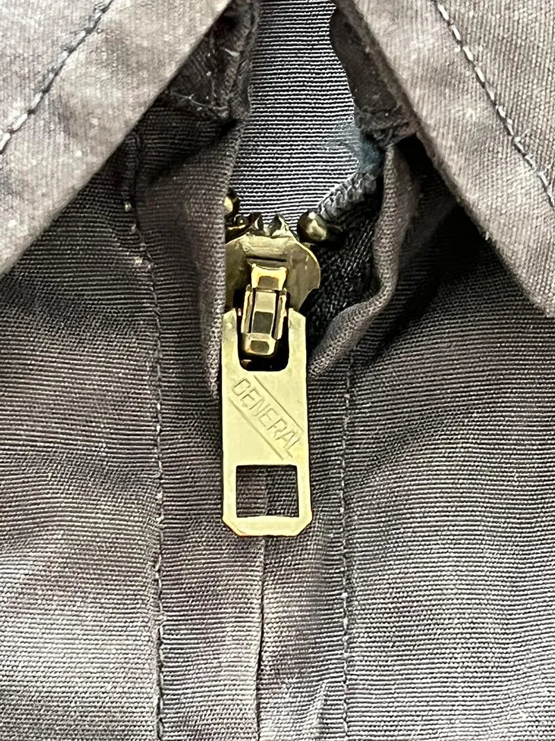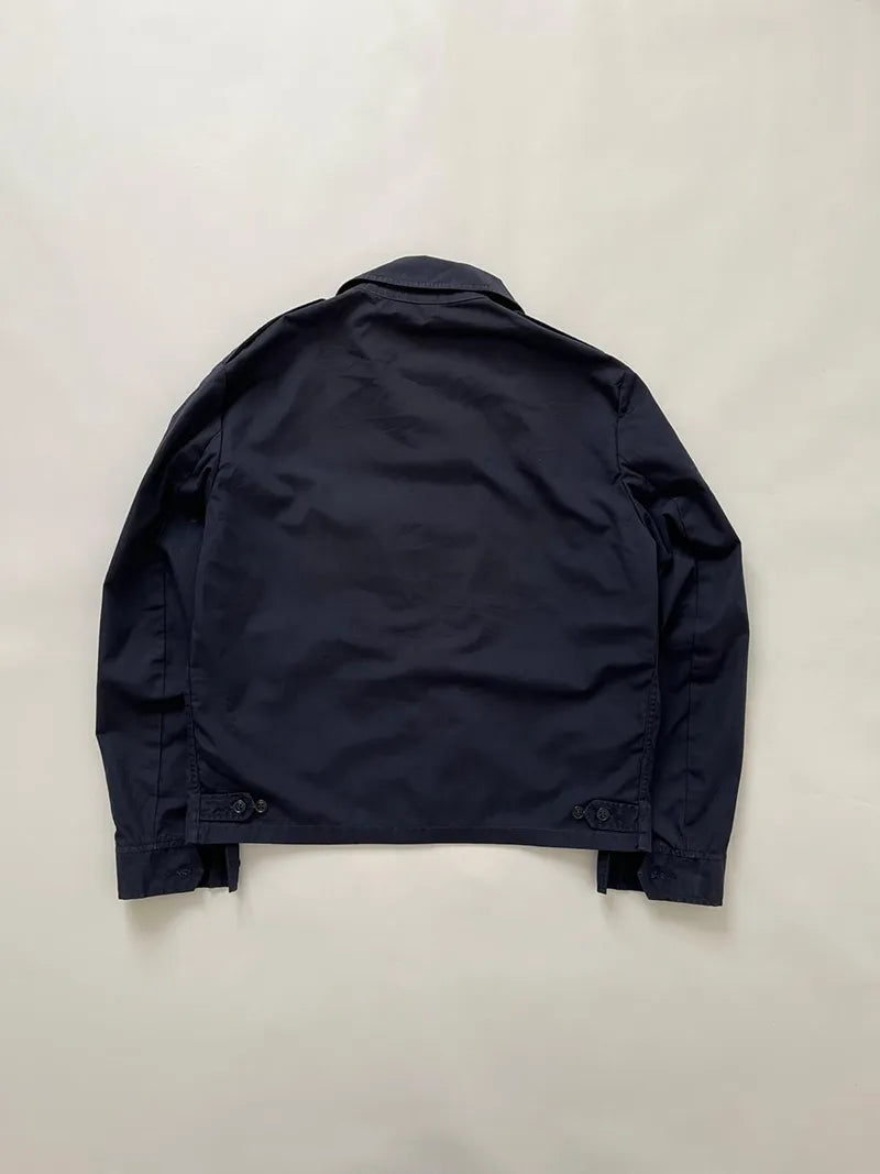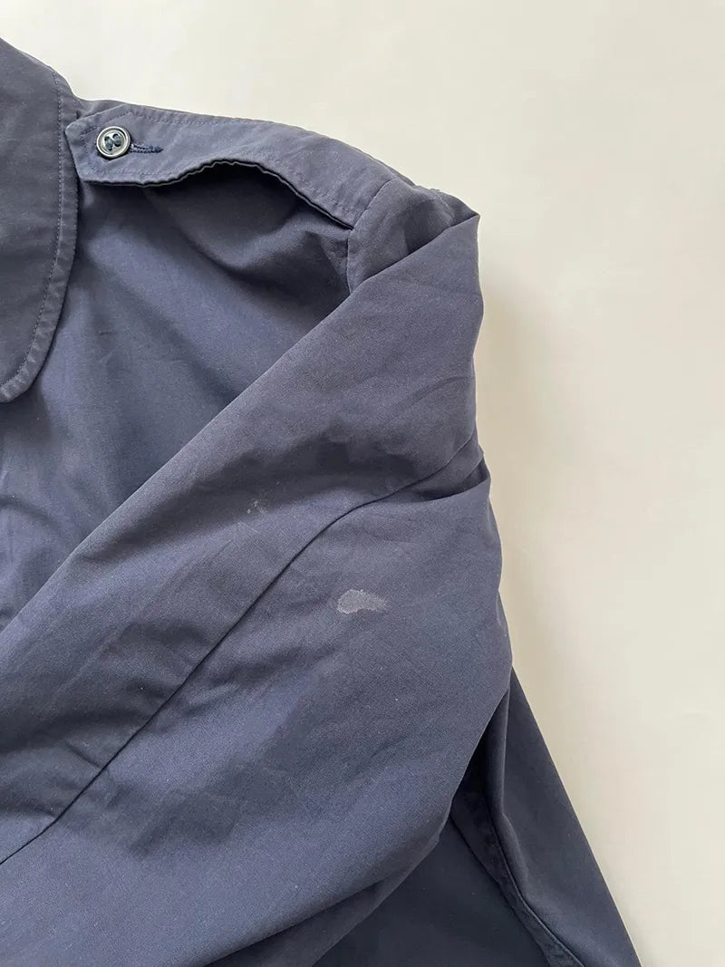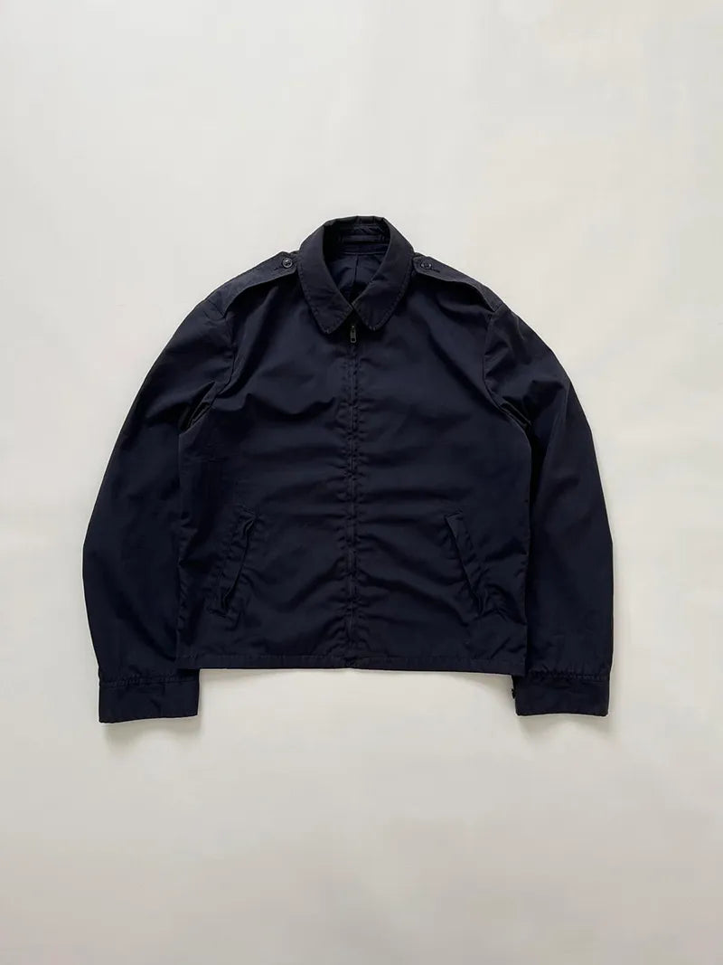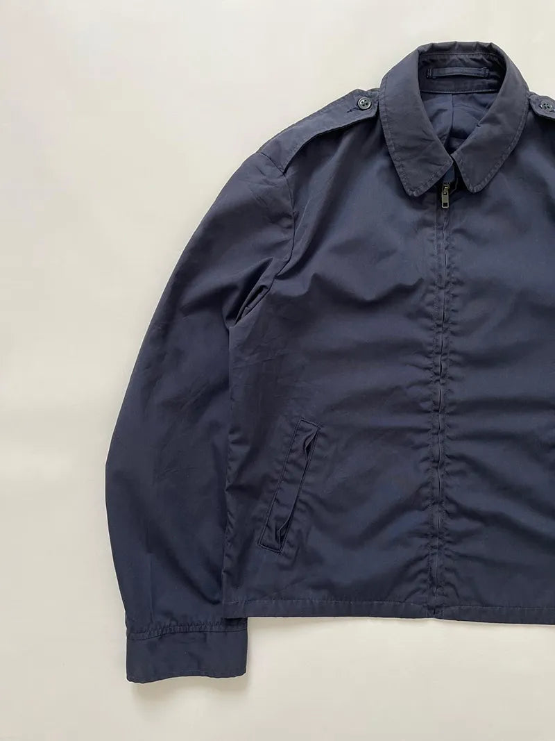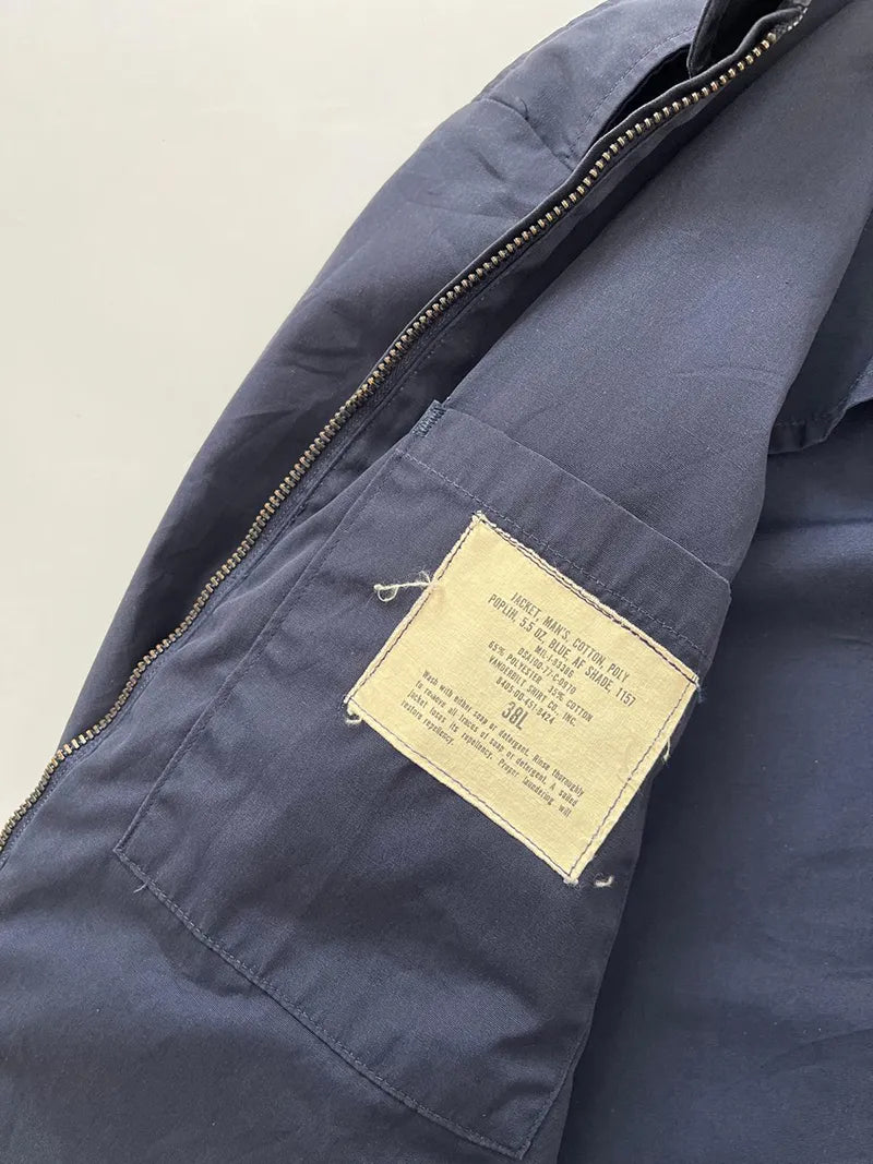 Couleur bleu marine, coupe carrée et fermeture éclair générale.