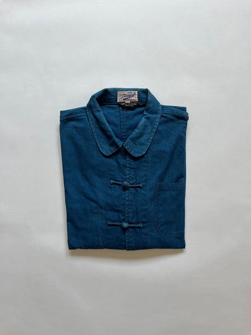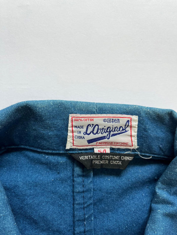L'abbigliamento da lavoro cinese si distingue per il suo intenso colore blu indaco, i tipici bottoni cinesi, il colletto alla Peter Pan della giacca e i pantaloni dal taglio chino, caratterizzati da una patta con bottoni e una vita regolabile.