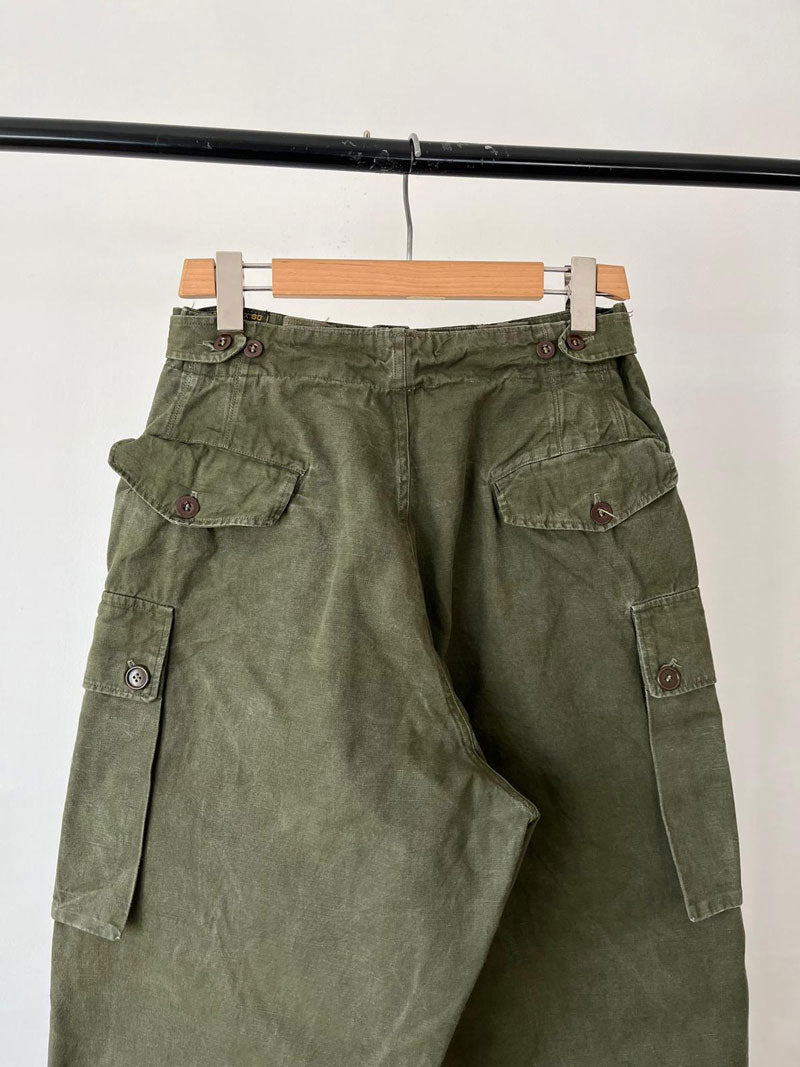 Dutch Army Cargo, un autentico pezzo di storia militare degli anni '80, realizzato per l'Esercito Olandese (Koninklijke Landmacht). Considerato da noi probabilmente uno dei migliori pantaloni cargo mai prodotti in ambito militare, questo capo si distingue per il suo fit impeccabile e la qualità senza pari.