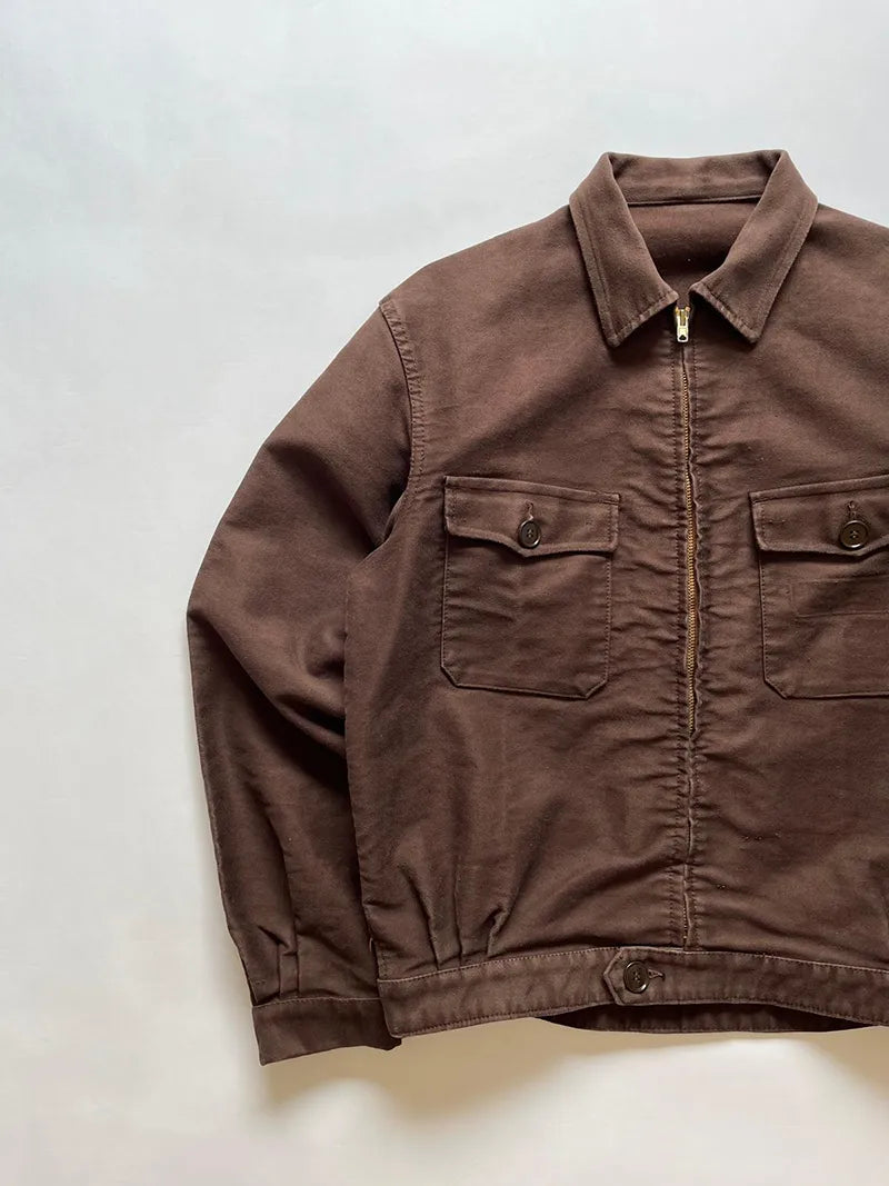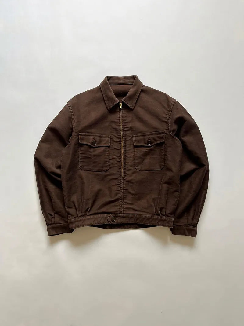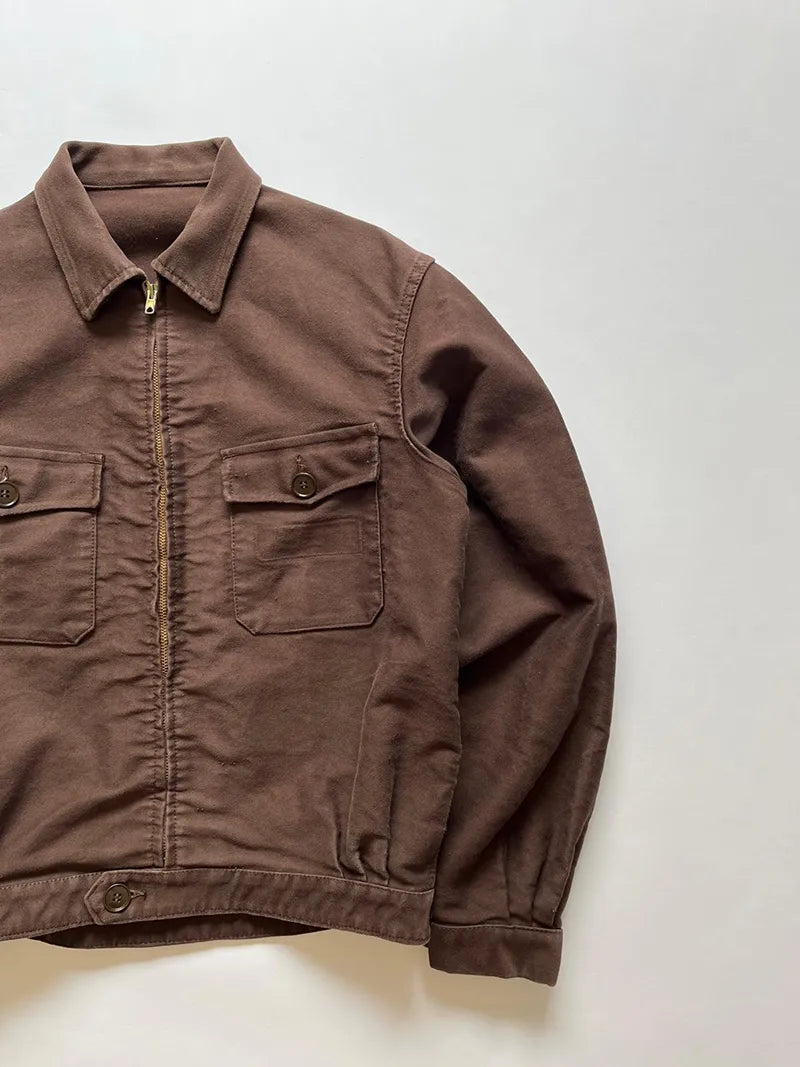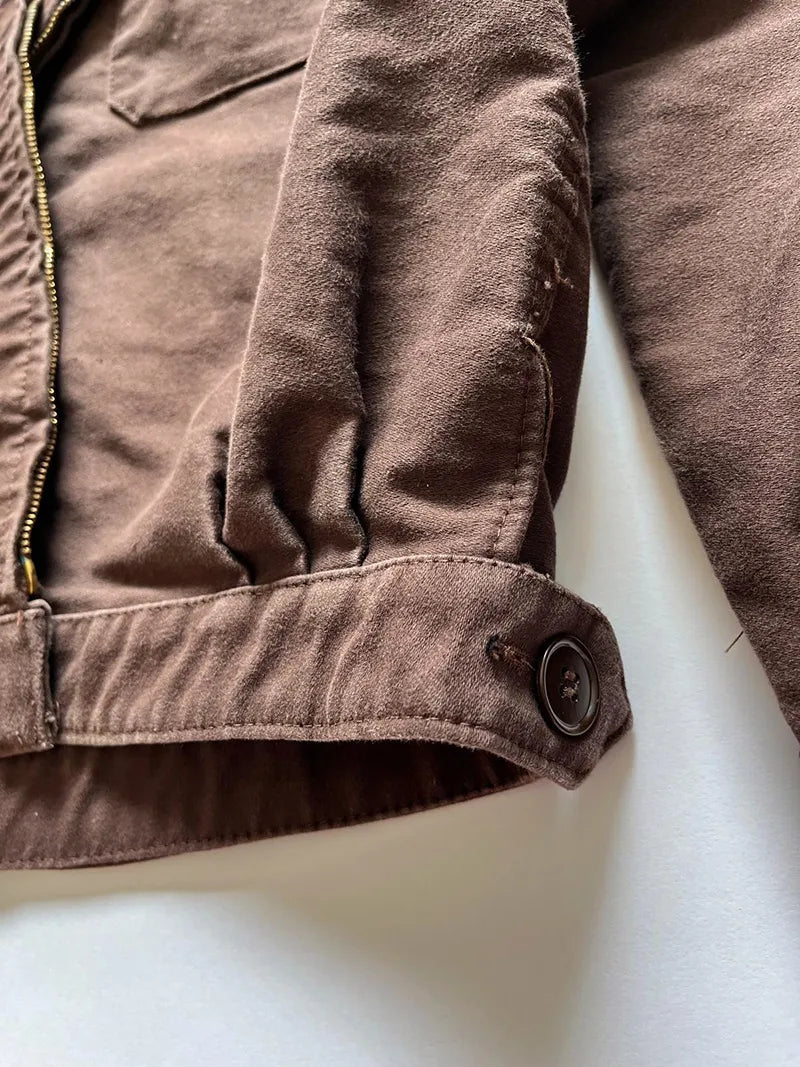 60s 70s French Brown Moleskin Cyclist Jacket - S