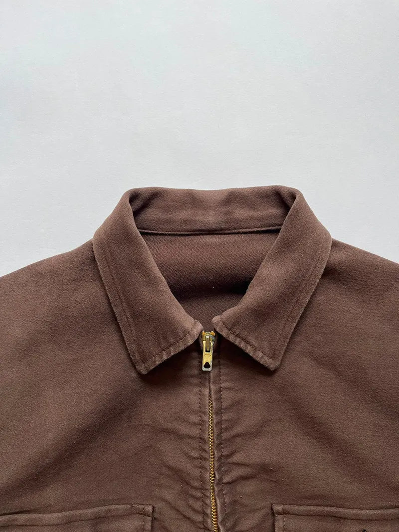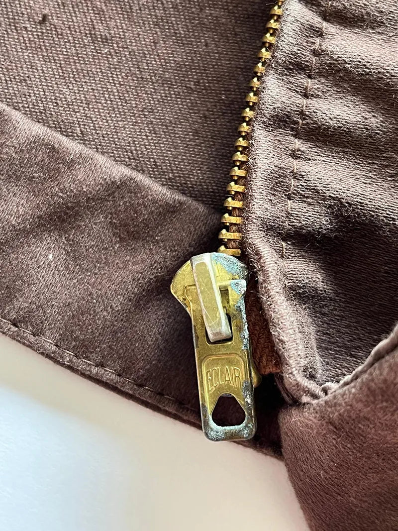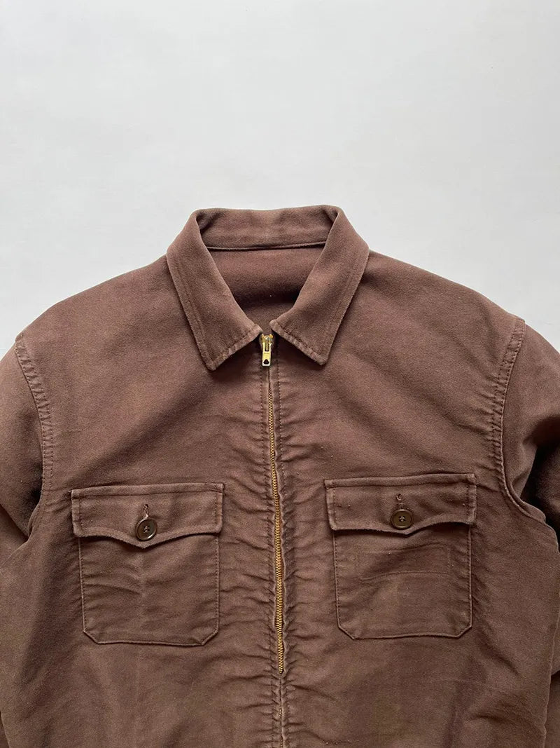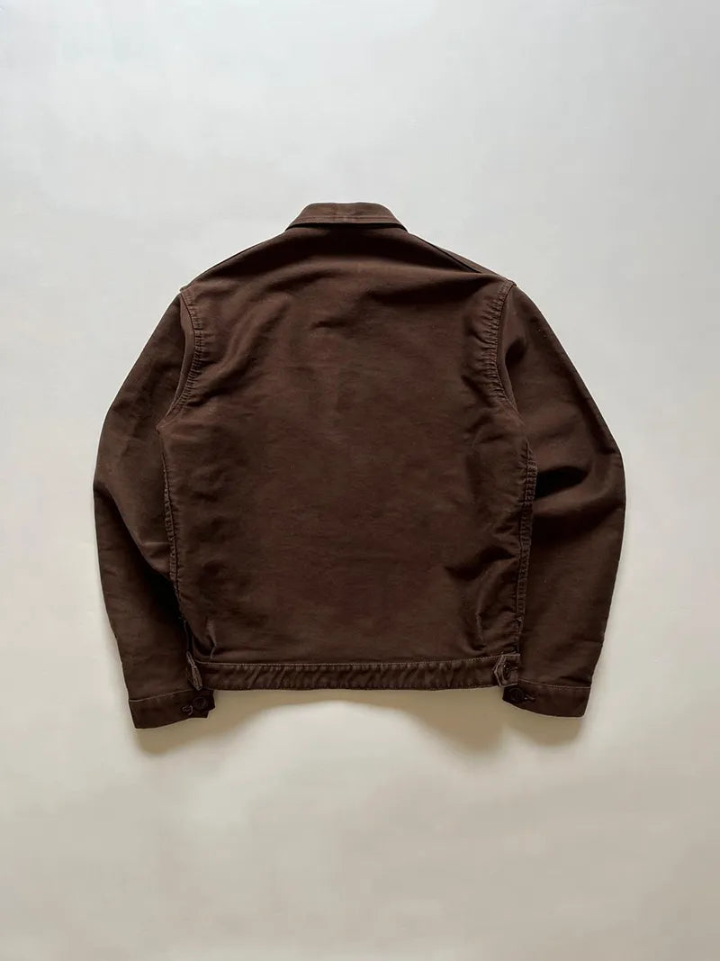60s 70s French Brown Moleskin Cyclist Jacket - S