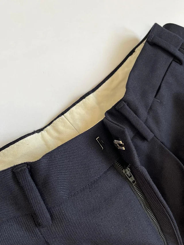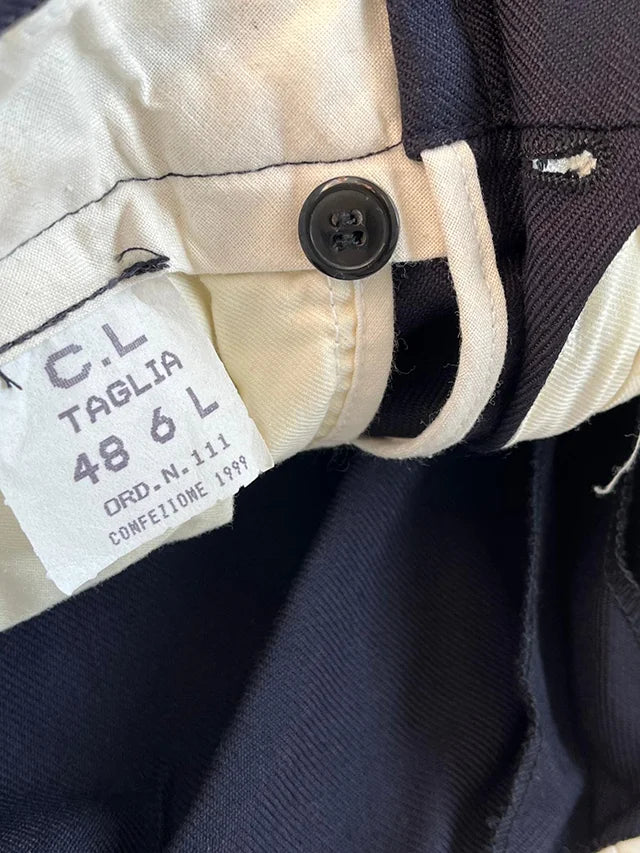 Pantaloni realizzata in 100% lana, destinati alla Marina Italiana. Il colore è un blue navy, straight fit.
