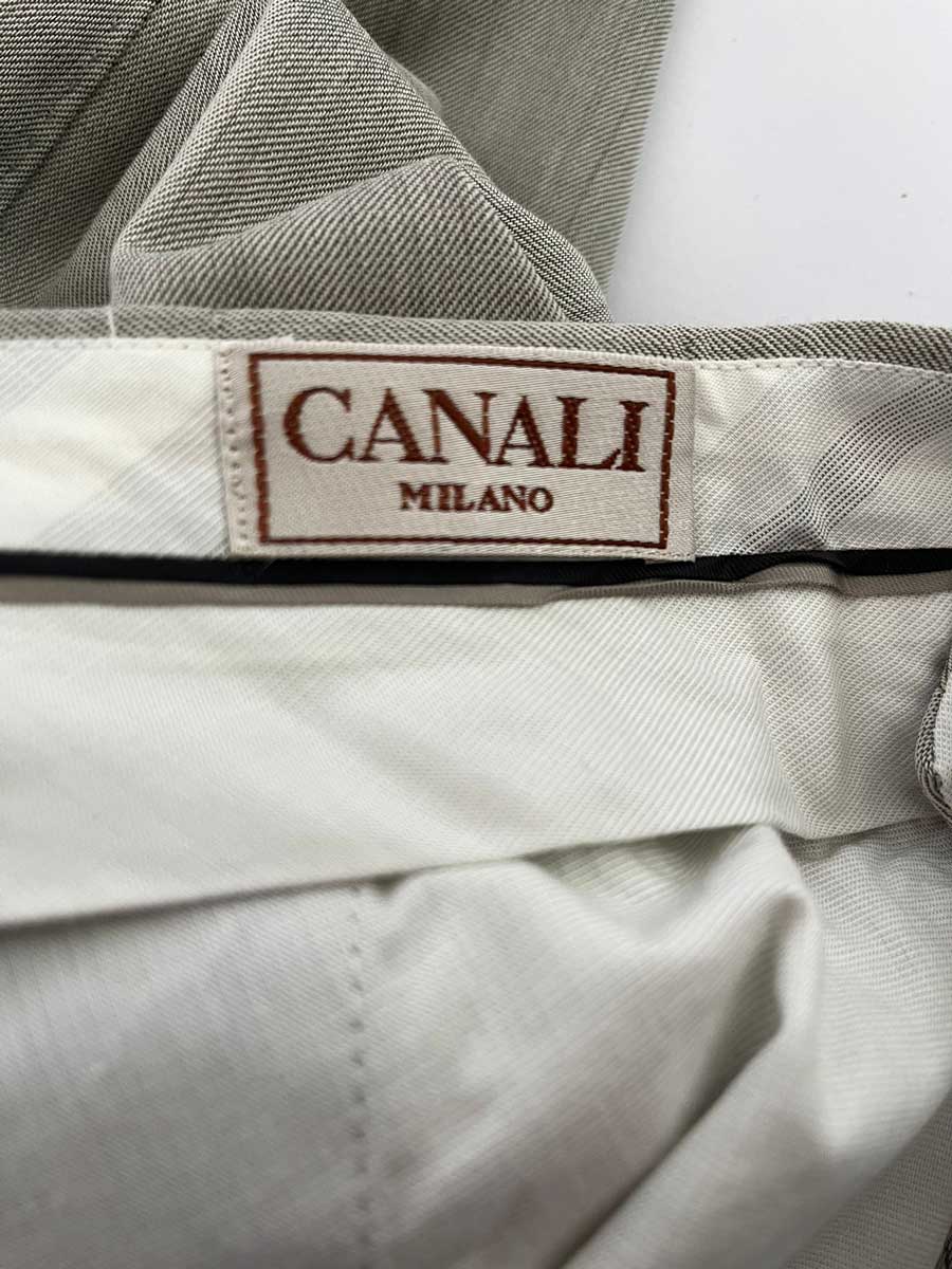 Pantalone artigianale anni 90 "Canali Milano" plissettato in pura lana vergine che incarna l'eleganza e lo stile distintivo della moda maschile italiana.