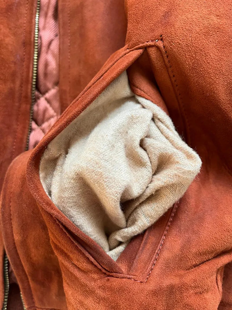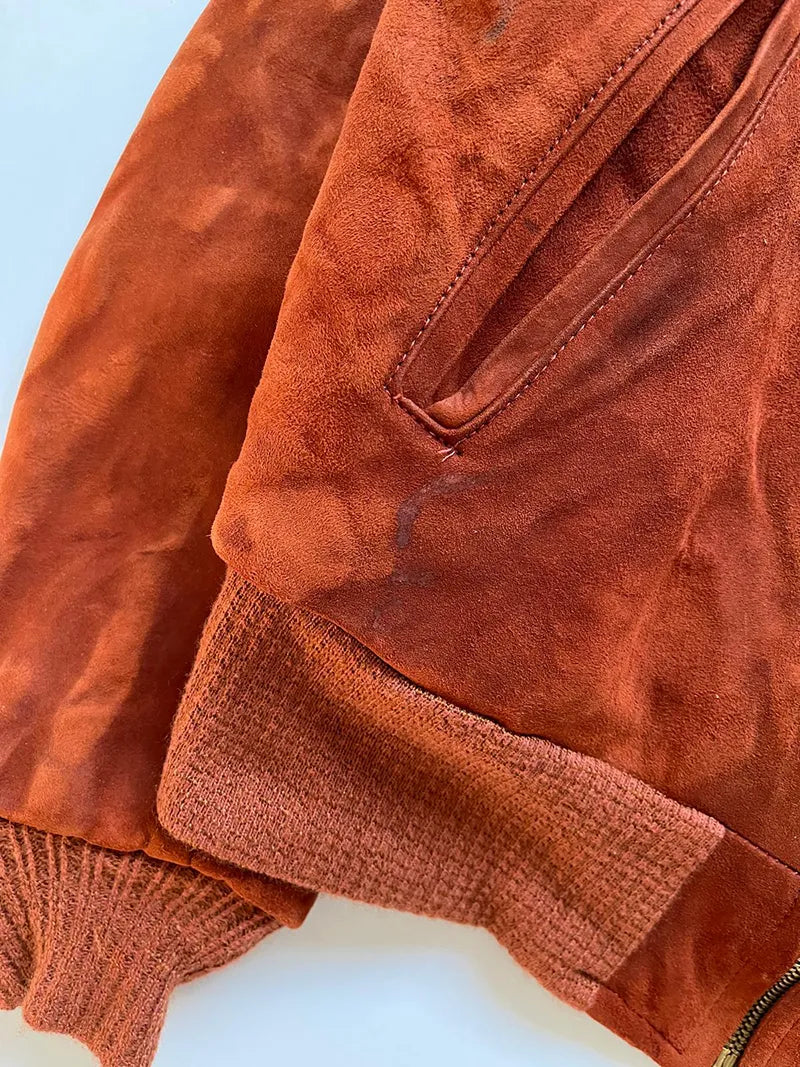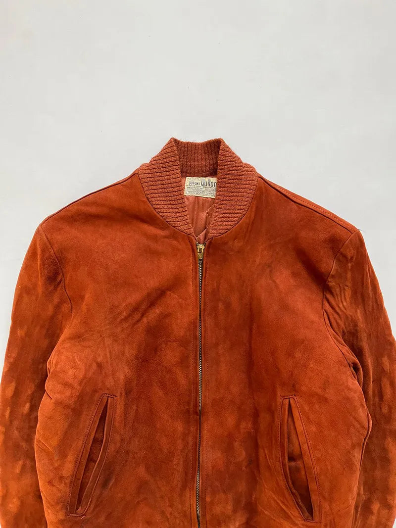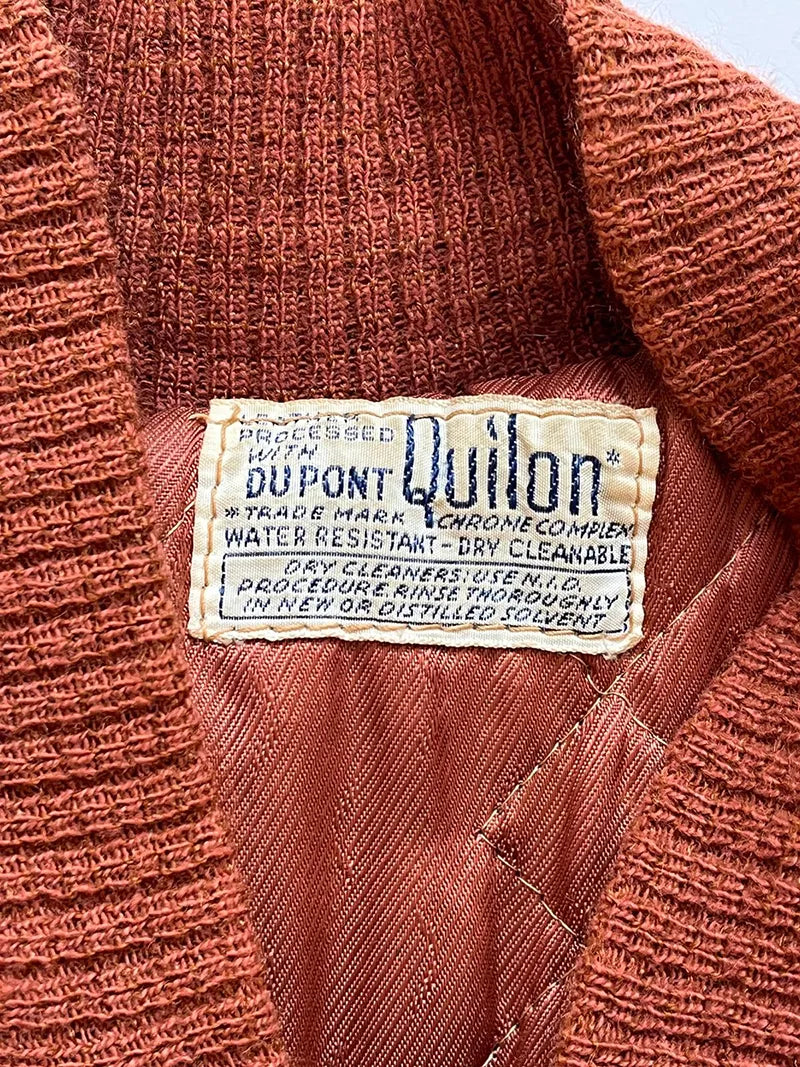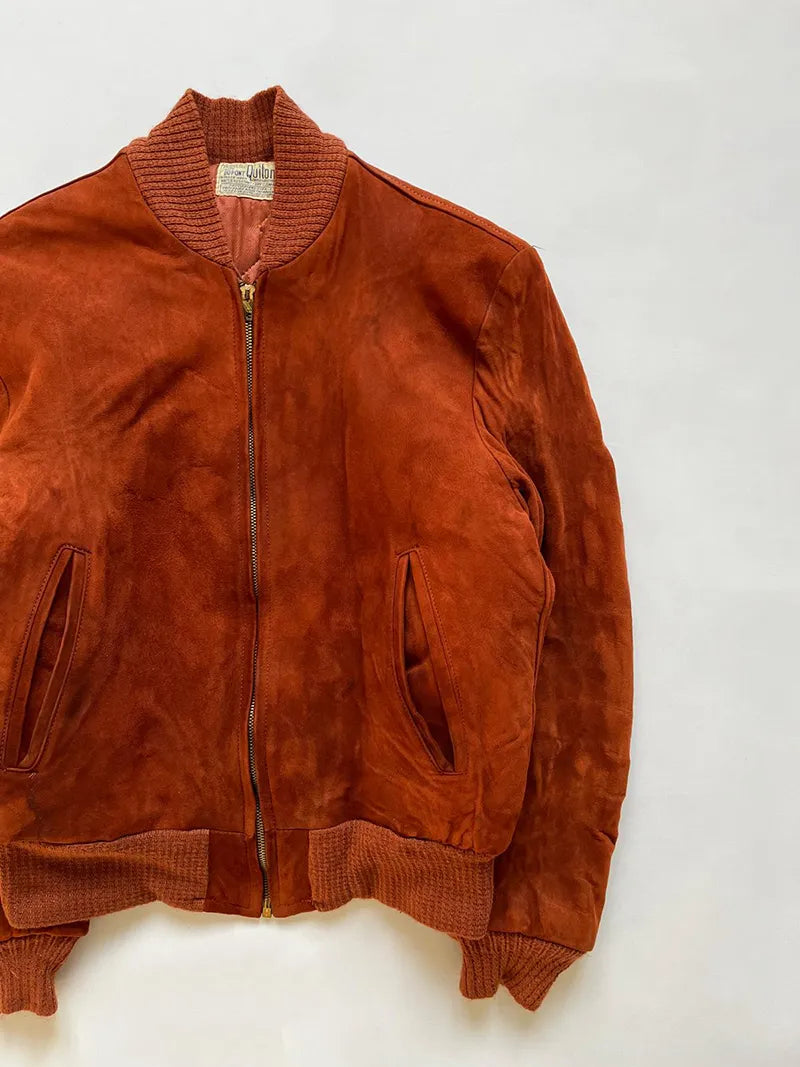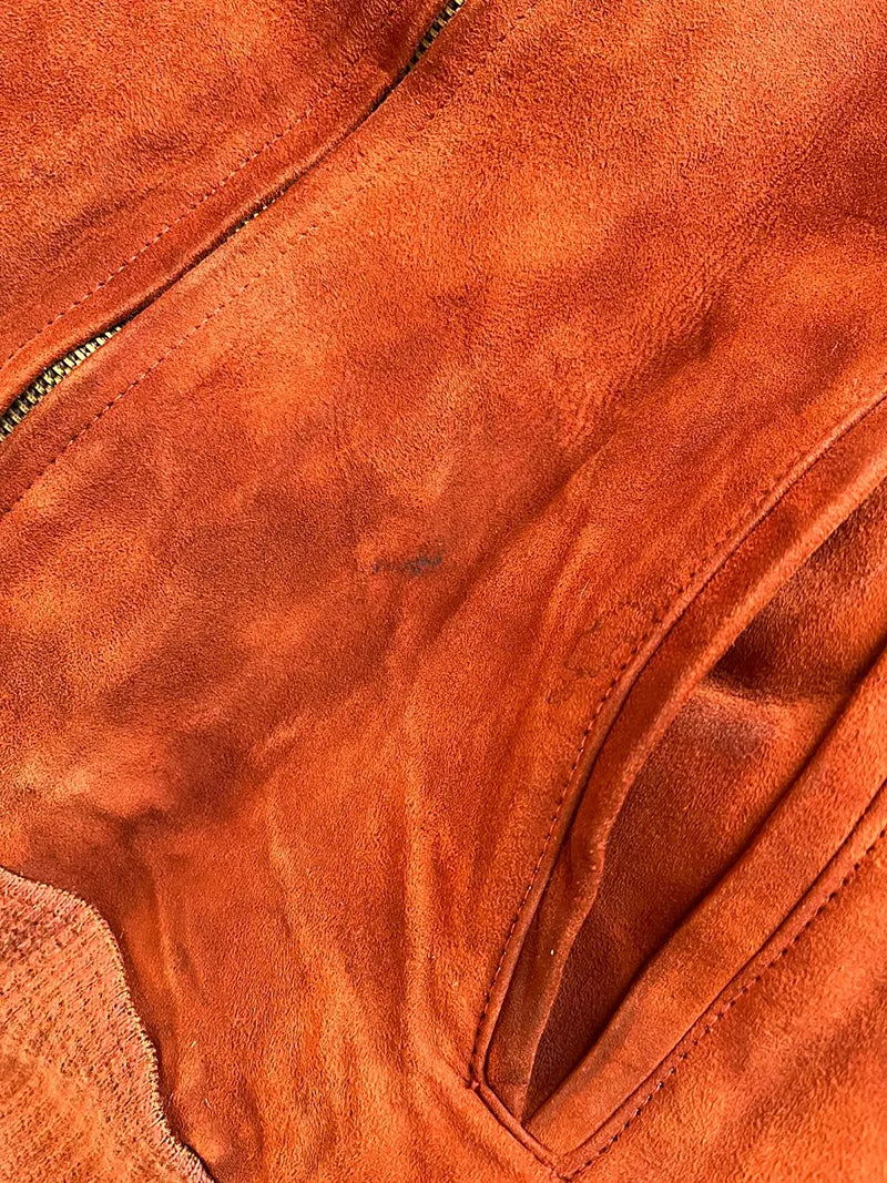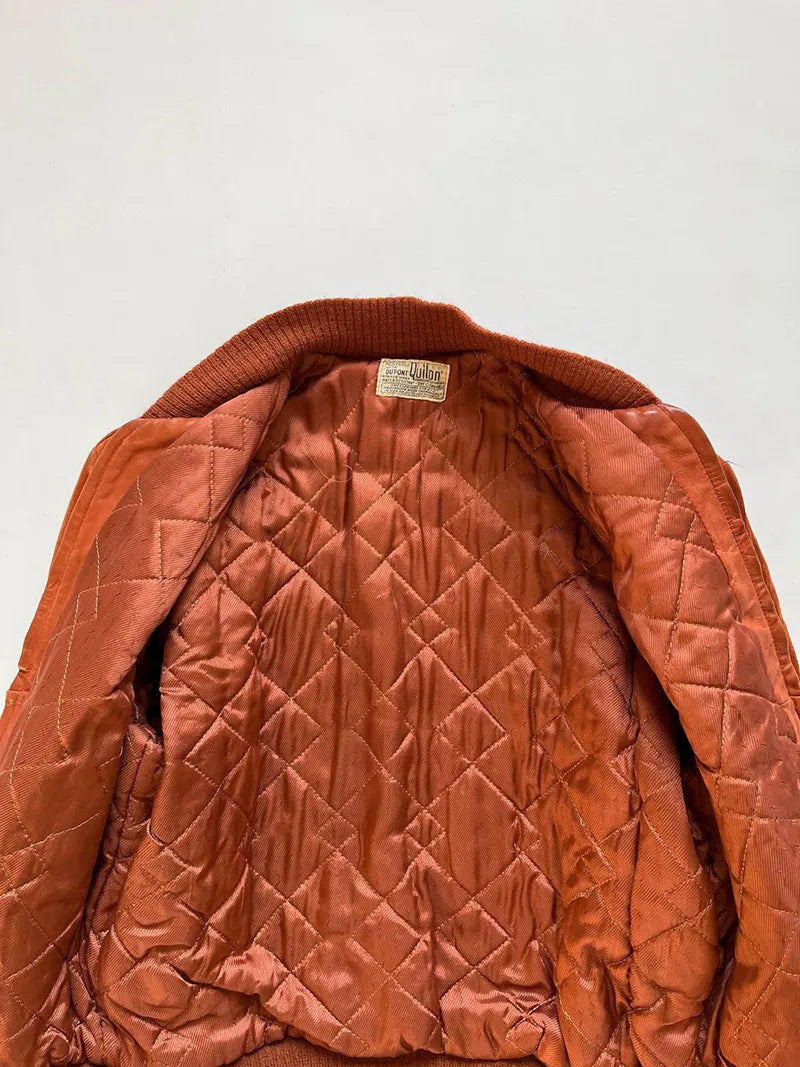 Giacca in camoscio prodotta indicativamente negli anni 50 da Dupont Quilon. Made in Usa. Completamente realizzata in camoscio e foderata internamente.