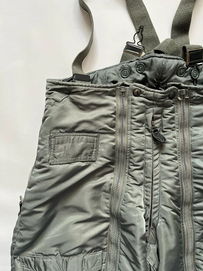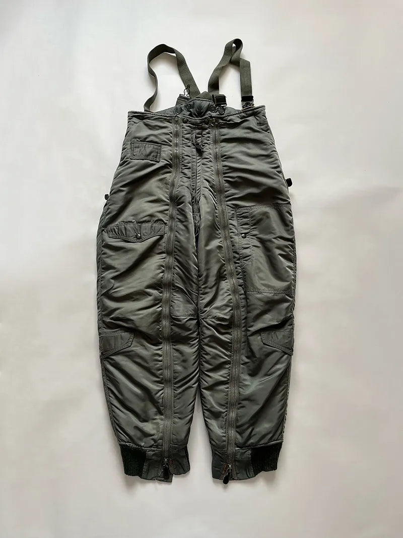 Progettati per offrire protezione e comfort ai piloti in ambienti ad alta quota. Realizzati in tessuto resistente e isolante, garantiscono protezione dal vento e dal freddo. Dotati di lunghe cerniere laterali per facilitare la vestizione sopra gli stivali, multiple tasche funzionali per strumenti ed equipaggiamento, e rinforzi strategici per una maggiore durabilità.