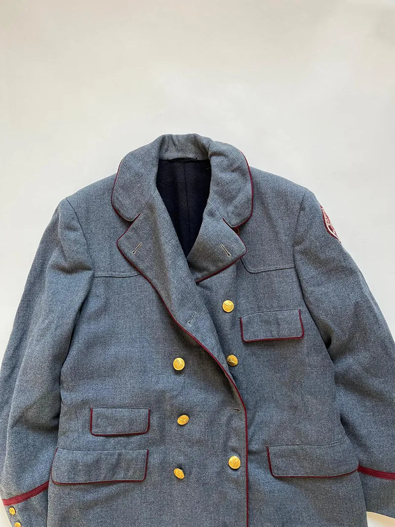 Uniforme in twill di lana blu dell’U.S. Post, utilizzata indicativamente negli anni ’50. Presenta una toppa con la scritta “Post Office Dept. U.S.A.”. Realizzata da Uniforms Fechheimer, noto produttore dell’epoca. Un autentico pezzo di storia americana.