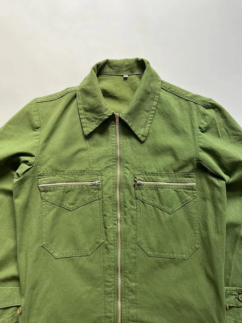 Giacca da lavoro italiana in cotone datata indicativamente anni 50/60. Zip Lampo e 2 tasche con delle bellissime zip Slid.