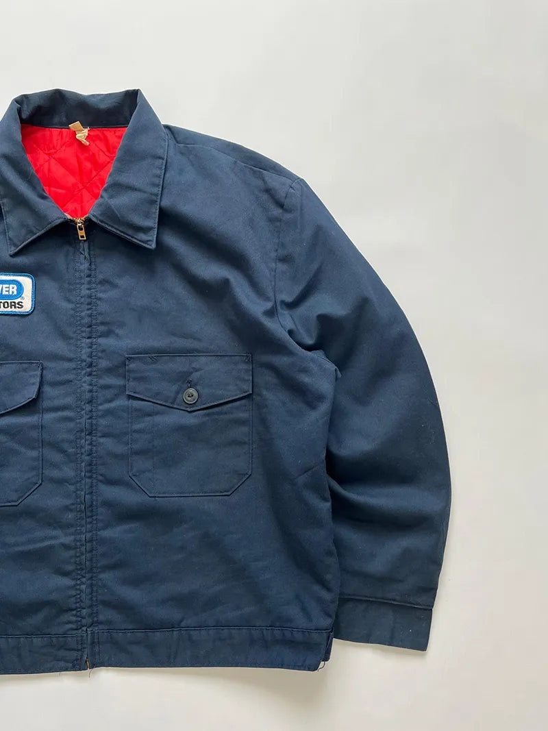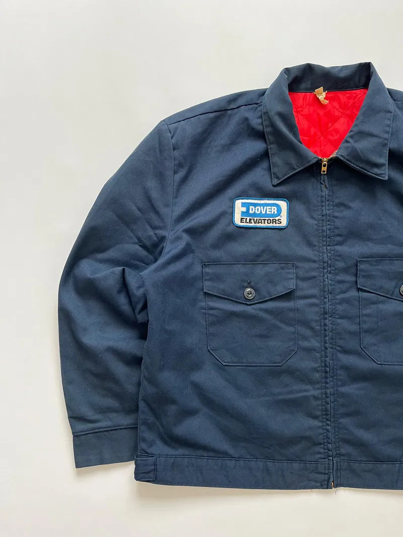 Work Jacket Red Kap made in USA, blu. Zip Talon e liner interno rosso.