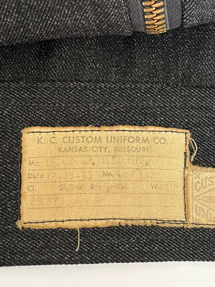 La giacca è dotata di una zip Talon e conserva tutte le etichette originali, tra cui il nome del produttore "K.C. Custom Uniform Co.", il luogo "Kansas City, Missouri" e il nome del precedente proprietario. Il colore grigio veniva in genere indossato dai lavoratori dei servizi postali dell'epoca.