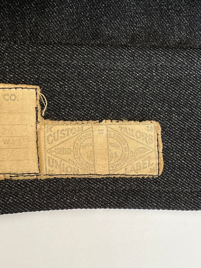 L'etichetta sindacale "Custom Tailors Union Label" è ancora presente, conferendo ulteriore autenticità al prodotto.
