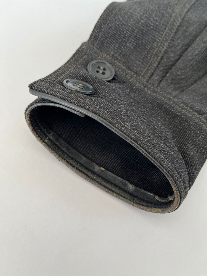 Questa work jacket in salt & pepper, risale alla fine degli anni '50 / inizio anni 60'. Il collo aperto conferisce a questo modello un aspetto distintivo ed elegante, caratteristica rara da trovare in una giacca da lavoro.